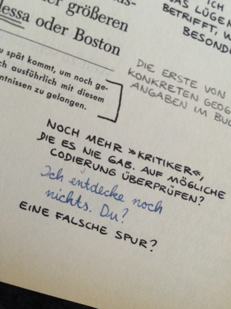 Was war die größte Herausforderung bei der Übersetzung? Ganz klar: Die Codes in den Fußnoten. Die Codes sind wirklich sehr ausgeklügelt und unsere erste Aufgabe war: verstehen, wie sie funktionieren. Die zweite Aufgabe: das auf Deutsch genauso toll hinzubekommen. Ein Beispiel: In Kapitel 4 wird das Codewort ermittelt, durch die Wörter nach den Worten, die mit „ex“ beginnen. Wir mussten also deutsche Wörter finden, die mit der Silbe „ex“ beginnen, gleichzeitig aber inhaltlich Sinn machen, denn die Fußnote beinhaltet ja einen sinnvollen Fließtext.